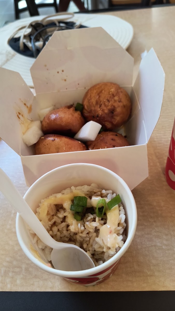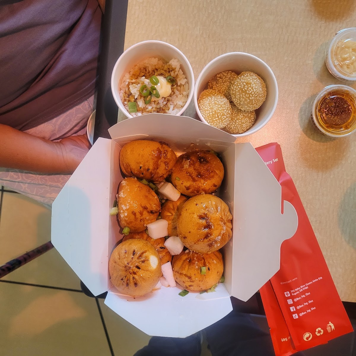 I have been here several times... and am surprised I have not done a review. So here goes... The bbq pork baozi are delicious, and fresh. Past visits verify this. This visit, I ordered the fried chicken and rice plate, and an order of sesame balls. Fried chicken is yummy, tender and juicy. Rice is good, nice and sticky... easy to eat with chopsticks. The order includes a nice portion of pickled Daikon radish, and some made in house Kimchi... both of which are delicious. Very nice service over all... definitely a full meal. Sesame balls... smaller than I am used to, but very tasty. The red bean paste inside is yummy, although I think it needs a bit more paste than they have. Seems skimpy! But worth the price. Service is always awesome... the staff here are wonderful, if you need something, all you have to do is ask.